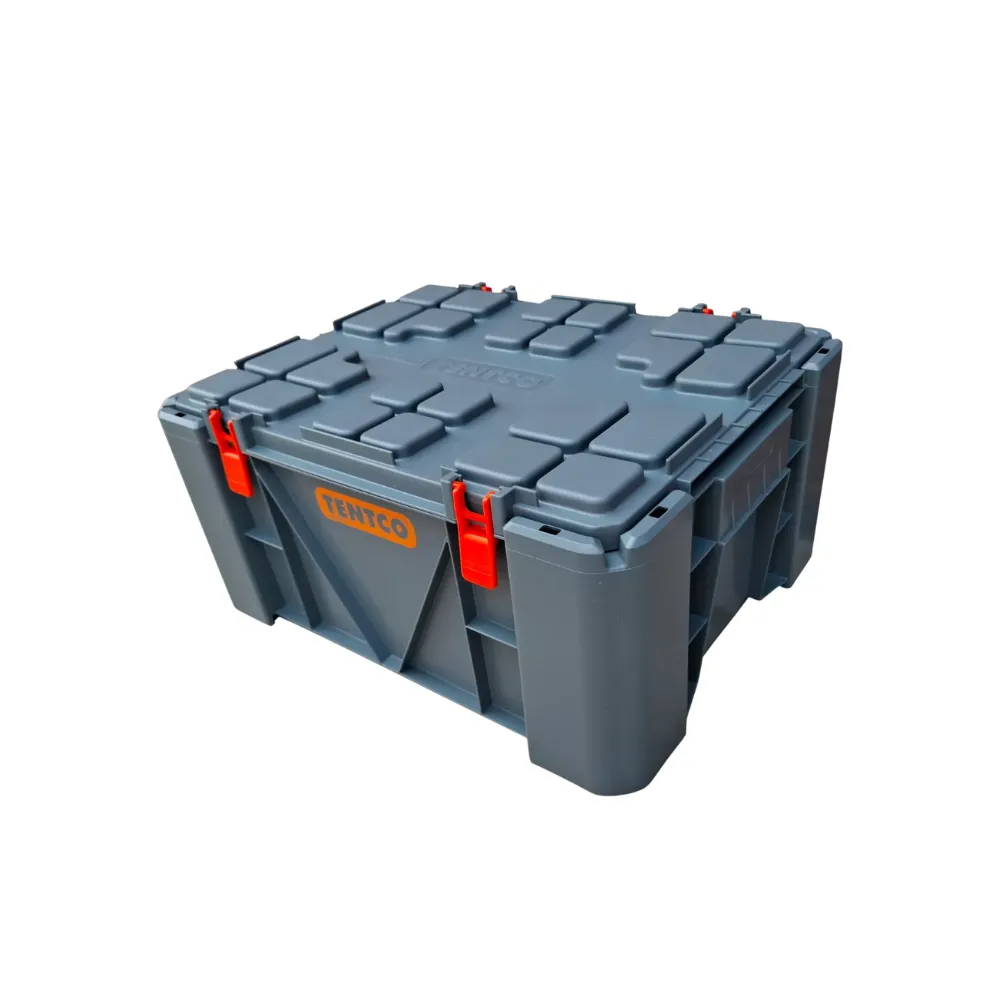 Tentco Ammo-Box Standard Black – Outdoor, Camping, Overlanding, General Storage Plastic Ammo Box with lid and clips. The boxes are stackable and lock into each other.