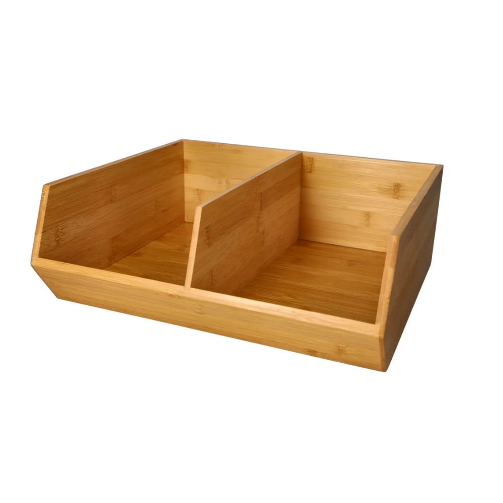 Keep your spare vegetables decoratively organized and easily accessible in your kitchen with our elegant bamboo Storage Box Holder. Perfect for storing onions, potatoes, garlic, and fruits, with open designs promoting airflow to keep items fresh longer. The divided sections help manage portion sizes, encouraging a more balanced diet with a variety of foods. The compartments prevent foods from mixing, which is especially useful for keeping crunchy items from getting soggy.
